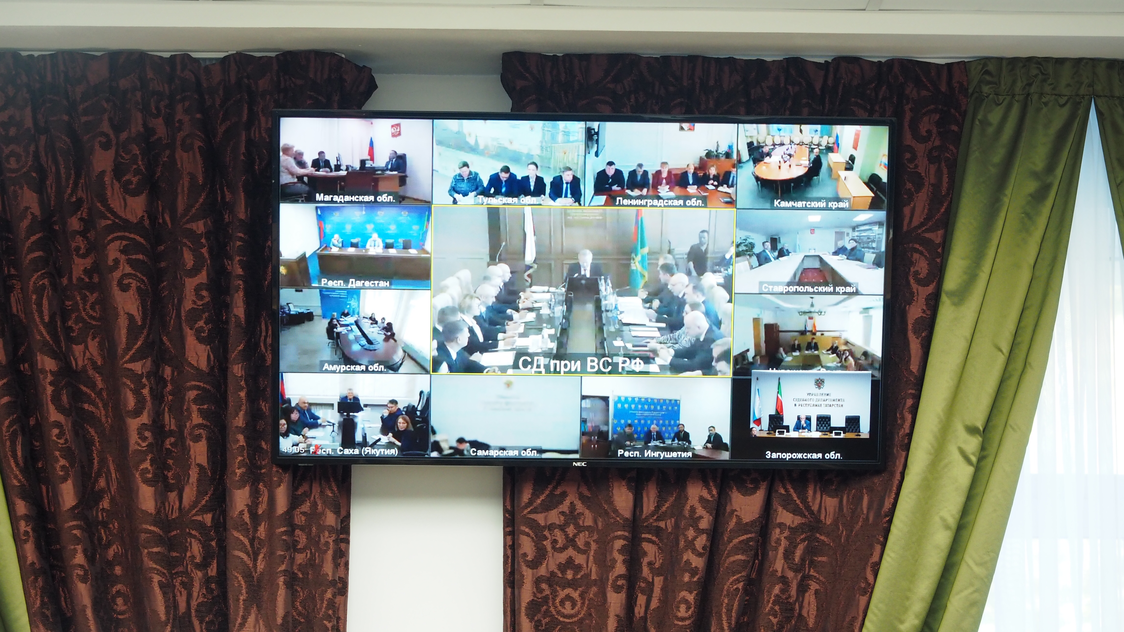 Сегодня в конференц-зале Управления в режиме видео-конференц-связи прошло заседание коллегии Судебного департамента при Верховном Суде Российской Федерации. С докладом «Об эффективности расходования бюджетных средств» выступил председатель коллегии – Генеральный директор Судебного департамента при Верховном Суде Российской Федерации Владислав Иванов. В рамках совещания была представлена информация по вопросам финансов, материально-технического обеспечения деятельности судов, капитального строительства и ремонта зданий судов. В мероприятии принял участие начальник Управления Судебного департамента в Республике Татарстан Зявдат Салихов, заместители начальника Управления, начальники структурных подразделений и иные сотрудники отделов Управления. |