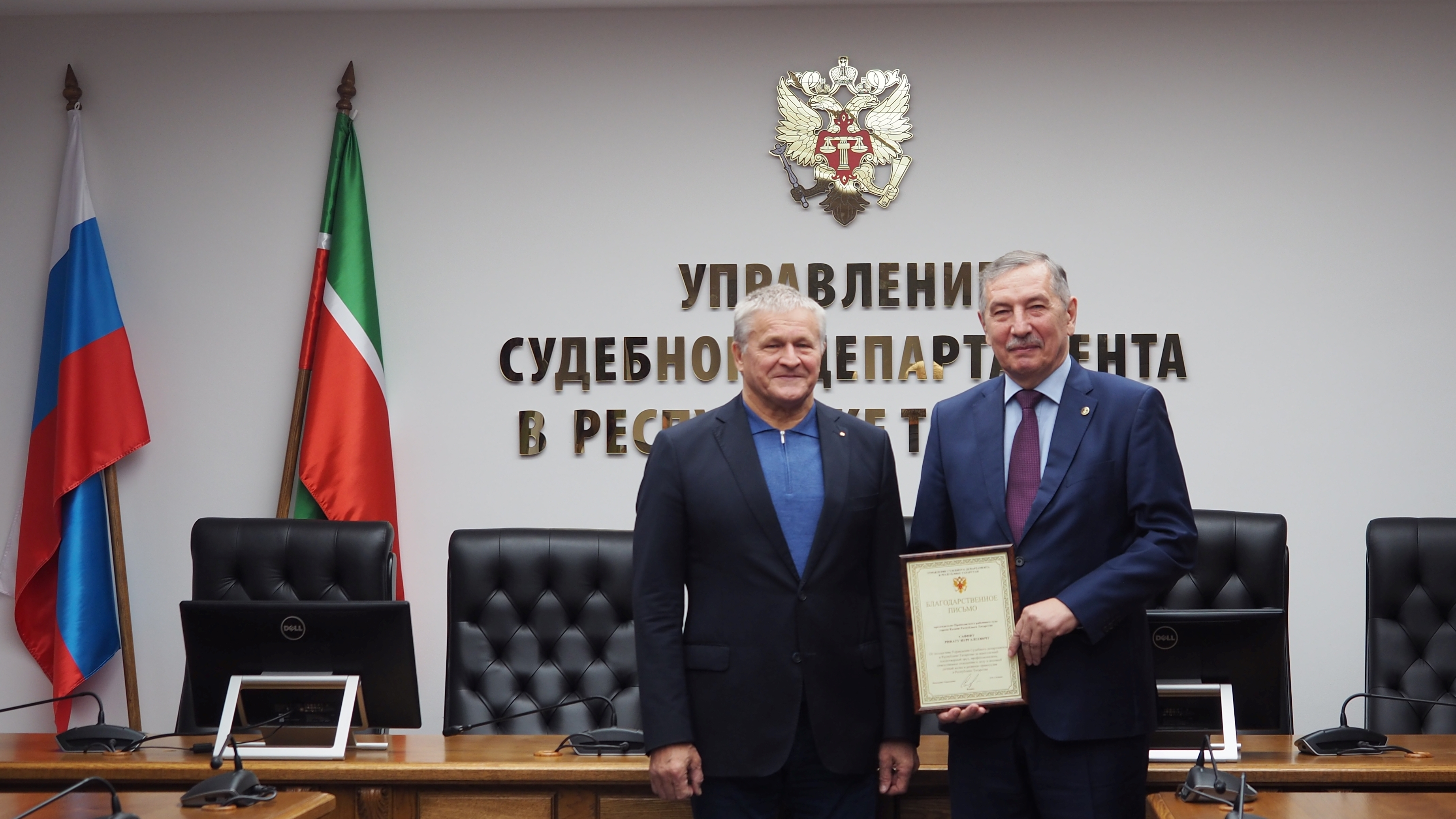 Сегодня в конференц-зале Управления под председательством заместителя начальника Управления Судебного департамента в Республике Татарстан Рамиля Рамазанова состоялось заседание комиссии по обеспечению санаторно-курортными путевками судей. Заседанию комиссии предшествовала торжественная часть. Председателю Приволжского районного суда г. Казани Ринату Сафину была объявлена благодарность от коллектива Управления Судебного департамента в Республике Татарстан за многолетний плодотворный труд, профессионализм, ответственное отношение к делу и весомый личный вклад в развитие правосудия в Республике Татарстан.