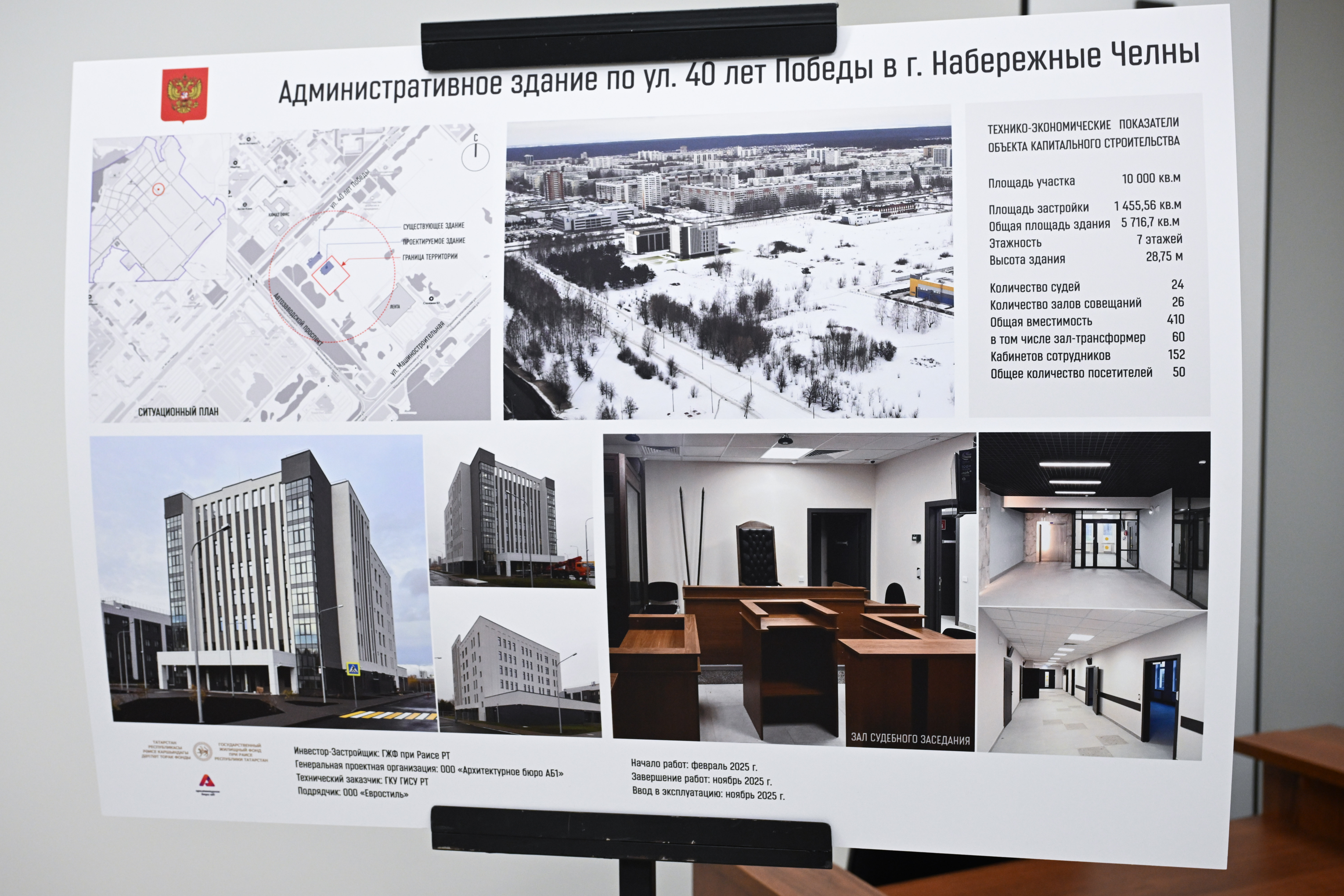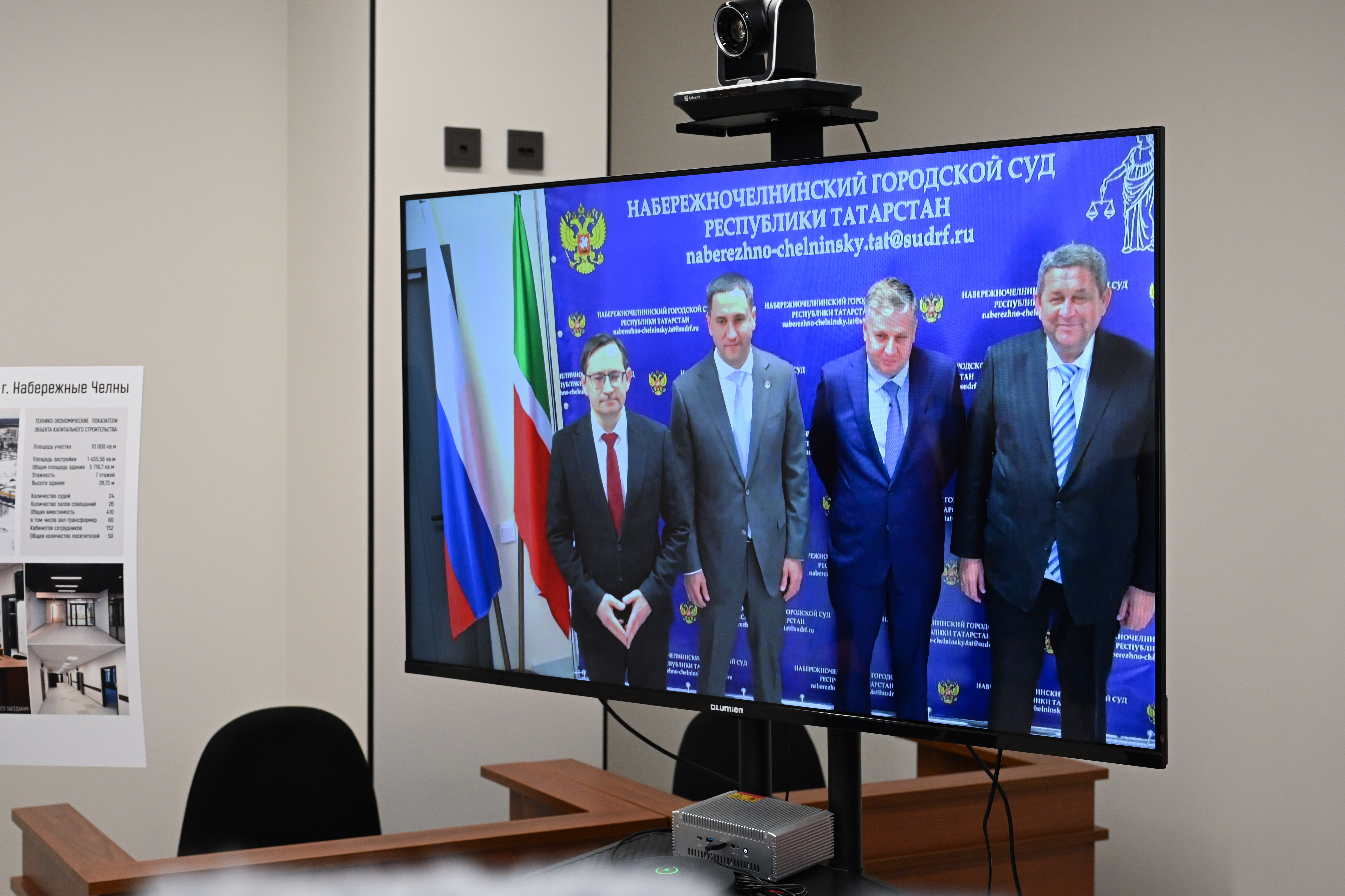 20 января состоялось посещение нового здания Кировского районного суда г. Казани по адресу улица Правосудия д.4, и Набережночелнинского городского суда Республики Татарстан посредством видео‑конференц‑связи (ВКС). В качестве почётных гостей в торжественной церемонии приняли участие министр строительства и ЖКХ России Ирек Файзуллин, Премьер-министр Республики Татарстан Алексей Песошин, начальник Управления Судебного департамента в Республике Татарстан Зявдат Салихов, председатель Верховного Суда Республики Татарстан Азат Гильмутдинов, председатель Кировского районного суда г. Казани Олег Соколов и и.о. председателя Набережночелнинского городского суда Рустем Галимуллин, а также представители федеральных органов власти. Здания построены с учётом актуальных требований, применяемых при проектировании и строительстве зданий судов общей юрисдикции: - оборудована парковка для посетителей, включая места для маломобильных граждан; - предусмотрены отдельные въезды для служебного и специального транспорта с заездом в закрытую зону для посадки‑высадки лиц, содержащихся под стражей; - внутри корпусов выполнено разделение на функциональные зоны: для посетителей, работников суда и конвойной службы, осуществляющей сопровождение лиц под стражей; - судьи и сотрудники обеспечены всеми необходимыми помещениями и залами заседаний, включая залы для процессов с участием присяжных заседателей; - все помещения оснащены принудительной приточно‑вытяжной вентиляцией и кондиционированием; - обеспечена безопасность: установлены металлообнаружители и турникеты, корпуса оборудованы цифровыми системами охранно‑пожарной сигнализации, видеонаблюдения и пожаротушения; - оборудовано необходимое техническое оснащение для эффективной организации работы суда.